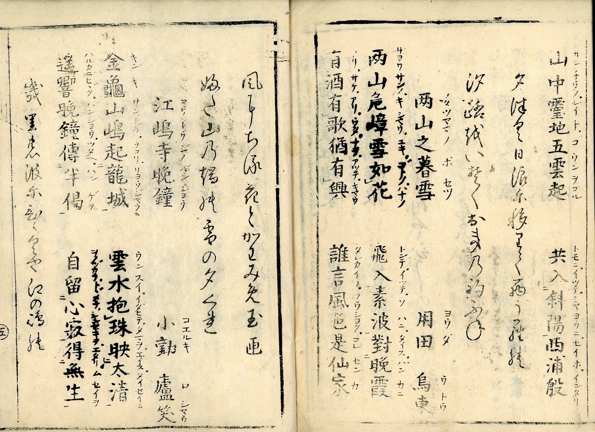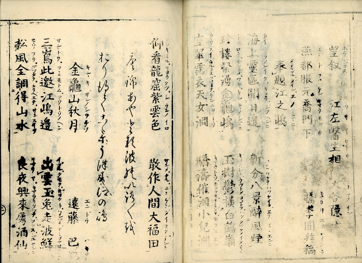 橋李囿 序文 江の島の風光を詠んだ【詩文】【田舎版】。 現在の藤沢市北部、御所見地区周辺の人々が詠んだ漢詩と和歌の詩文集。八景は、金亀山秋月、岩屋之晴嵐、小兒淵夜雨、鵜嶋之落雁、東浦之帰帆、西浦之夕照、両山之暮雪、江嶋寺晩鐘。詠者の居所は、現藤沢市の遠藤、打戻、宮原、用田に加え、現 寒川町の小谷、小動、現 綾瀬市の吉岡となっています。詠者の中で、用田の烏東は明和4年(1766年)3月、大磯鴫立庵再興の記念集として編まれた『湘海四時』に入句句しています 。 この書は版の摺りにムラが多いのが目に付きます。当時の出版は江戸・大坂・京都が中心で、それ以外の地方で摺られたものは「田舎版」と呼ばれていますが、この書はおそらく地元の藤沢地域で摺られたもので、内容とあわせ、非常に貴重なものと言えましょう。 |