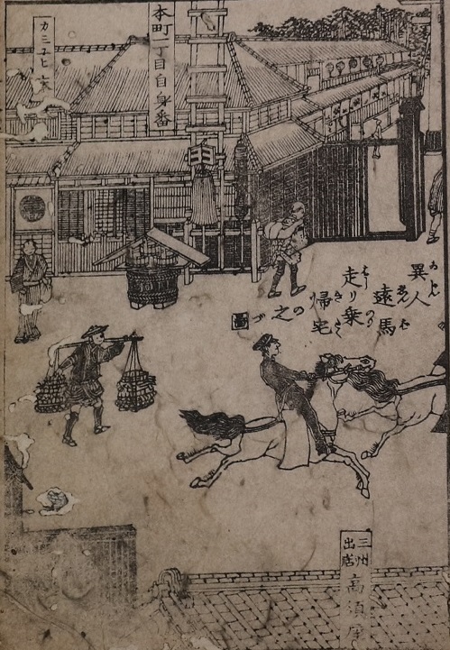歌川貞秀 文久2年(1862) 横浜絵や鳥瞰図で知られる歌川貞秀が、開港間もない横浜を訪れ、現地の様子を詳細に記した版本です。遠近法などの表現は西欧の銅版画や石版画を参考にしたと言われています。外国人居留地の他、アメリカ、フランス、オランダ、ロシアなどの風俗についても幅広く紹介しています。 |