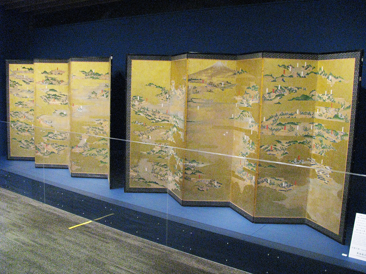사이교 법사의 시선 끝에는 후지산이 보이지만 그 앞쪽에는 커다란 소나무가 있습니다. 요시와라슈쿠에 도착하기 전, 소나무 길 사이로 왼쪽에 보이는 후지산이 ‘좌후지’로 유명했던 데에서 영감을 얻은 것으로 보입니다. 에도에서 교토로 향하는 길에서 왼쪽에 후지산이 보이는 곳은 두 군데밖에 없었습니다. (다른 한 군데는 난고의 휴식처입니다) 마치 그곳을 걷고 있는 듯한 느낌을 주는 연출입니다.