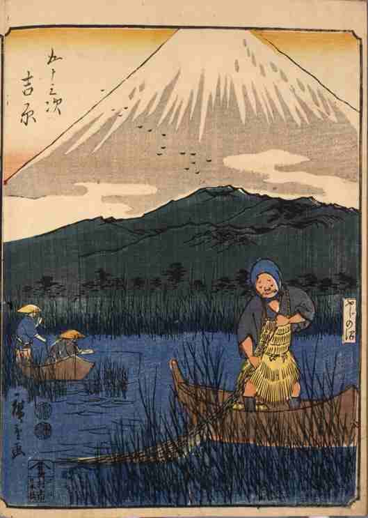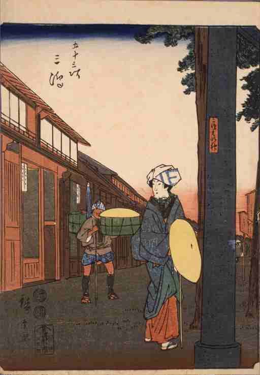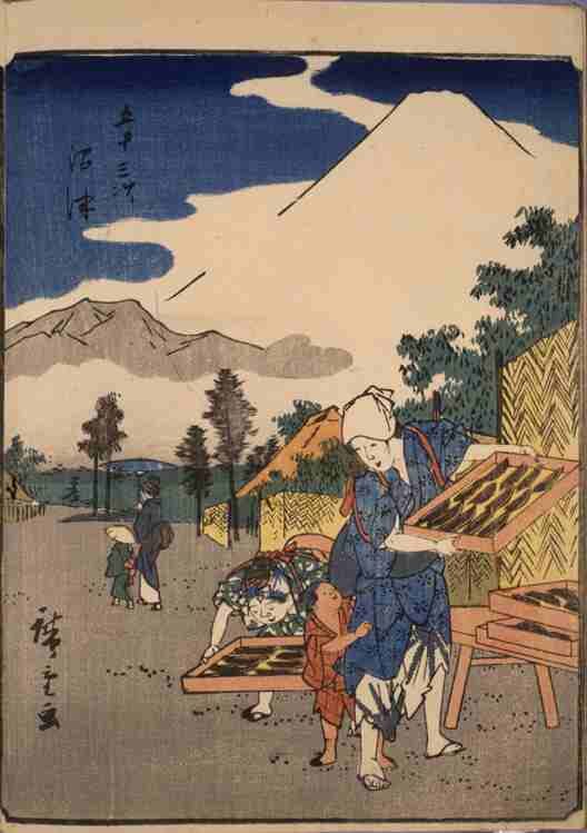 2대 우타가와 히로시게 1854 찻집의 2층에서 바다를 바라보는 여인들의 모습을 묘사하고 있습니다. 가나가와 다이마치의 언덕에는 바다를 조망할 수 있는 2층 구조의 찻집들이 다닥다닥 붙어 있었는데 그곳에서 바라보는 일렁이는 파도가 장관이었다고 합니다.