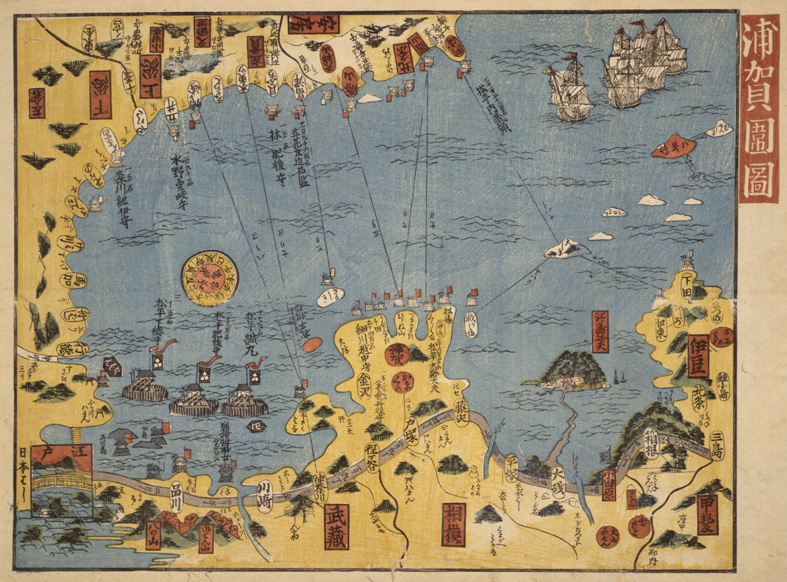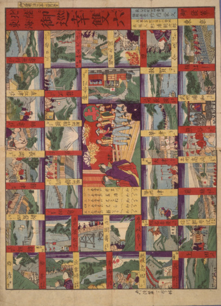 张交图是指在一幅画中插入多处名胜(风景、特产、故事等),广重以东海道为首,参与了各地的张交图的制作。