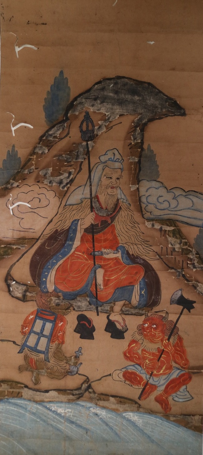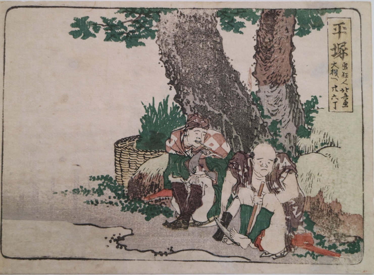 作者不詳 江戶時代 役小角(役行者)是飛鳥時代至奈良時代的著名的咒術師,亦是修驗道的開山鼻祖。民間流傳著許多有關他的生平軼事,雖史書記載甚少但史上確有其人,以富士山、江之島為首的很多修驗道的靈場都是役行者所開創,也是役行者曾苦行修煉的場所。隨在役行者跟前的是前鬼和後鬼(夫妻鬼,前鬼是夫,後鬼是妻),傳說役行者俱有使役鬼神的法力。