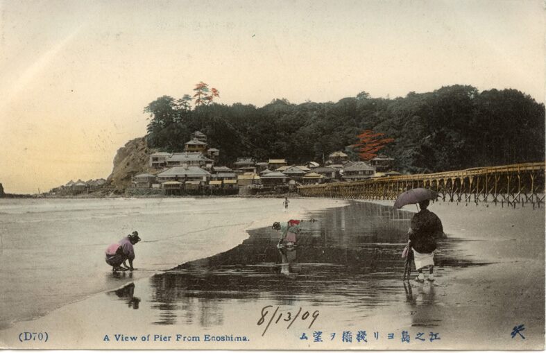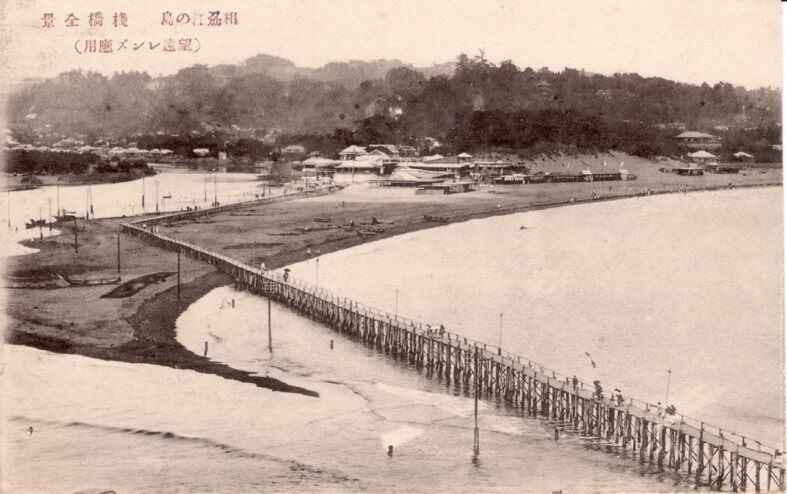 江之島(えのしま)ヨリ棧橋(さんばし)ヲ望(のぞ)ム