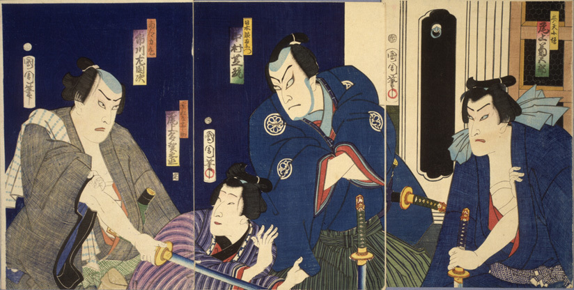 製作(せいさく)時期(じき):天保(てんぽう)14年(ねん)(1843)~弘化(こうか)4年(ねん)(1847)。 板元(はんもと):伊場仙(いばせん)(伊場(いば)屋(や)仙三郎(せんざぶろう)) このシリーズは、初代(しょだい)広重(ひろしげ)、三代(さんだい)豊国(とよくに)、国芳(くによし)の3人(にん)の当時(とうじ)代表的(だいひょうてき)人気(にんき)浮世絵師(うきよえし)が分担(ぶんたん)して描(えが)いたものです。 風景(ふうけい)は少(すく)なく人物(じんぶつ)を主(おも)とし、下(した)3分(ぶん)の2が画面(がめん)で、それぞれの宿(やど)にちなんだ伝説(でんせつ)、史跡(しせき)、著名(ちょめい)な出来事(できごと)等(など)を描(えが)き、上(うえ)3分(ぶん)の1に下(した)の絵(え)の説明(せつめい)がなされています。