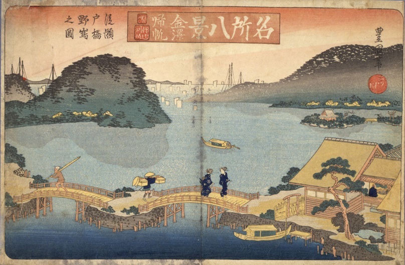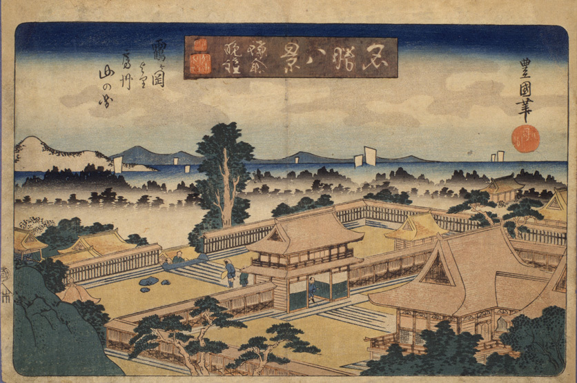 いずれにしても二代豊国の代表的な作品であるこの八景のうち「大山夜雨」とならんで、この作品は最もすぐれたものといえましょう。