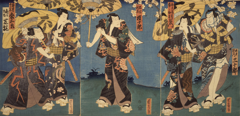 国貞(三代豊国の前名)描くこの東海道シリーズは、各宿の風景をバックにして前面に立ち姿の美人を描いたもので、全シリーズを通し、バックの風景画は広重の保永堂版東海道に非常によく似ています。